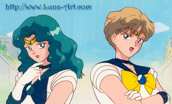 Sailor Neptune and Uranus make their first appearance (at least where they're not in shadows). After they introduce themselves, they stand back-to-back and tell the others that they are searching for the talismans and won't let anyone else have pure heart crystals.