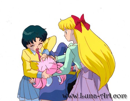 Ami is embarrassed because the girls are spying on Mamoru about to give Usagi a kiss. When Chibi Usa gets too loud, she freaks out and goes a bit overboard trying to restrain Chibi Usa.