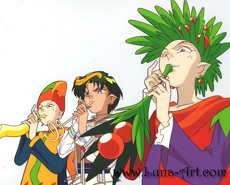 Bananu, Pupuran and Oranjiya play their flutes to call forth more Bon-Bon Baddies.