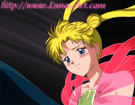 Fiore suddenly appears and grabs the exposed ginzuishou on Sailor Moon's chest. Fiore tells Sailor Moon he won't allow her to change the course of his meteor away from Earth and presses on her brooch even harder, which undoes her Sailor fuku and turn it into ribbons. Sailor Moon tries to convince Fiore that he is not alone, but he tells her that is a lie. Sailor Moon then drops her head and concentrates, causing the ginzuishou to shine with even more power.