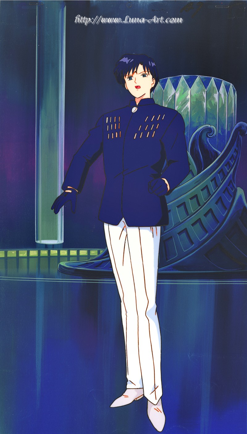 The background is damaged where it was once stuck to the cel; the damage is covered up by the cel