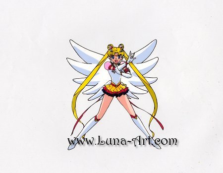 Part of Eternal Sailor Moon's introduction speech as she is saying, "Sailor Moon!". The details on this cel are done very well.