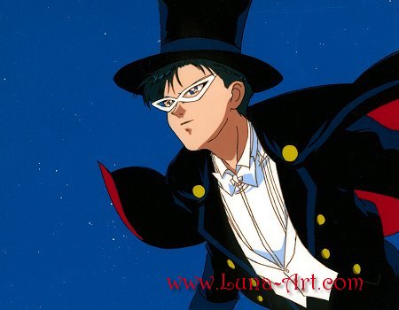 Tuxedo Mask flying across the sky from the SuperS series opening.