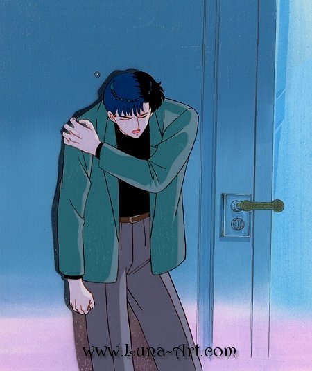 Mamoru has been stabbed in the back by Zoisite. He returns home and curses himself for not protecting Sailor Moon.
