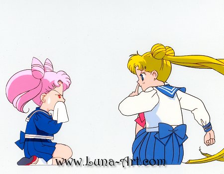 Chibi Usa "revives" an unconscious Usagi by suffocating her with tissues. Usagi wakes up and angrily snorts the tissues at Chibi Usa's face. Chibi Usa takes out a handkerchief and wipes her face off. One of those wonderfully quirky Sailor Moon moments.