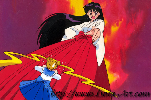 Usagi has been kept behind at school and will be late to a meeting the girls have arranged. She imagines Rei pointing an accusing finger and saying: "You clumsy slowpoke! Moron! Retard!"