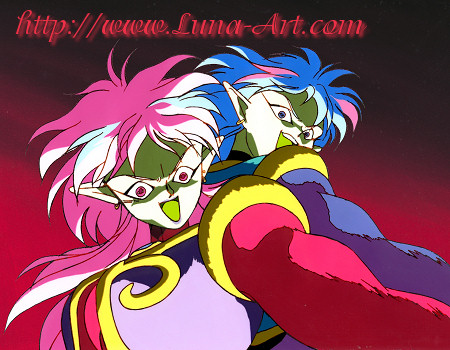 Useless, useless, useless!! Ann explains how useless the Senshi's attacks are against them as Ann and Ail repeatedly blast everyone. By far my favorite Ann and Ail cel - I love the freaky/insane looks on their faces.