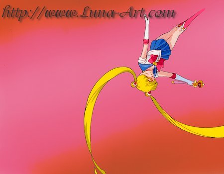 Sailor Moon holds her spiral heart moon rod and flips around all over the screen as each of the other Sailor Senshi are featured in the background. While I didn't know it at the time, a Sailor Venus OP cel I bought a few years later is the A-layer that matches this cel. I have married them together to show how they originally appeared on the screen and included it below (with the exception of the non-matching background, of course).