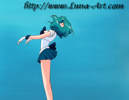 Neptune Planet Power! Make-up! Shot from Sailor Neptune's transformation as she flips around into her final pose.