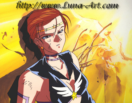 Eternal Sailor Moon tells Galaxia she will turn her back to normal and brings out her Eternal Tier. The golden light that ESM releases shines down on Sailor Star Maker and the others.