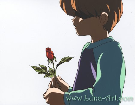 Chibi Fiore in human form has just accepted a rose from chibi Mamoru, who has befriended him during his time on Earth. He says to Mamoru, "Thank you. Someday, I will bring you many flowers."