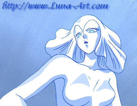 A snow dancer prepares to encase Sailor Moon and Chibi Moon in ice when a red rose comes shooting by to block her path. She looks up in surprise to see Tuxedo Mask arrive on a sleigh dressed as Santa Claus.