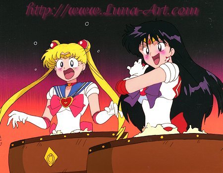 Sailor Moon and Sailor Mars Trapped Inside of Drums