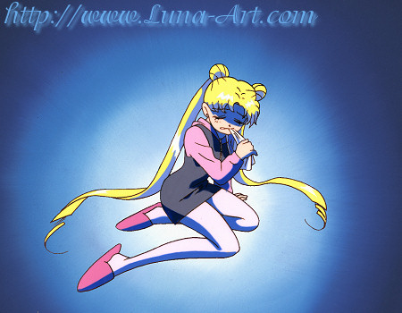 Usagi visits Mamoru at his apartment. She says she has always wanted to ask him who he cares for more, her or Chibi Usa. When he hesitates for a second, she jumps to the conclusion that Chibi Usa means more to him. Usagi dramatically chews on a handkerchief as a spotlight hits her and it begins to rain. Usagi sobs, "I'm the most unfortunate woman in the world!"