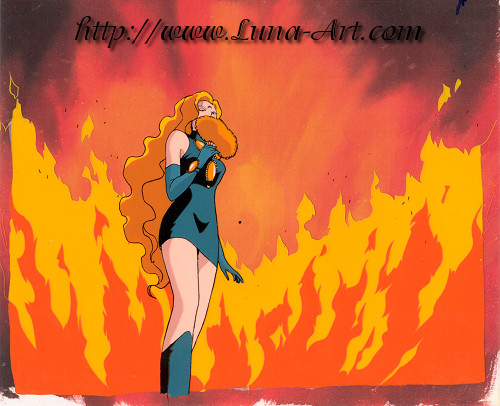 A black paint chip (approx. 1/4th inch) is missing from Esmerodo's leg (paint chip is stuck to the front of the 2nd cel layer) - it looks like someone filled in the missing paint with black ink