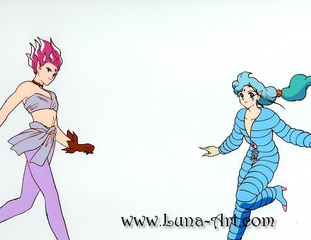 Hawks Eye and Fish Eye come leaping in. This is one of the very first cels that was given to me as a gift from my husband. Does he curse the day he told me he got it from eBay? Oh, yeah . . . hehe.