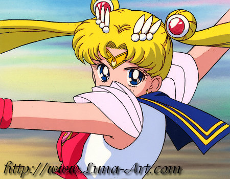 Sailor Moon performs her Rainbow Moon Heart Ache. Wonderful close-up as she pauses midway through her attack, begins to say "Rainbow . . ." and starts spinning the opposite direction.