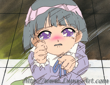 Hotaru has a flashback after she has an attack and faints. In her dream, Chibi Hotaru is crying over her dead goldfish, "Who did this to my goldfish?" Kaolinite tells Hotaru this is something Hotaru did herself and she should hurry and clean it up. Hotaru cries she didn't know anything about it! There is just so much emotion in this cel!
